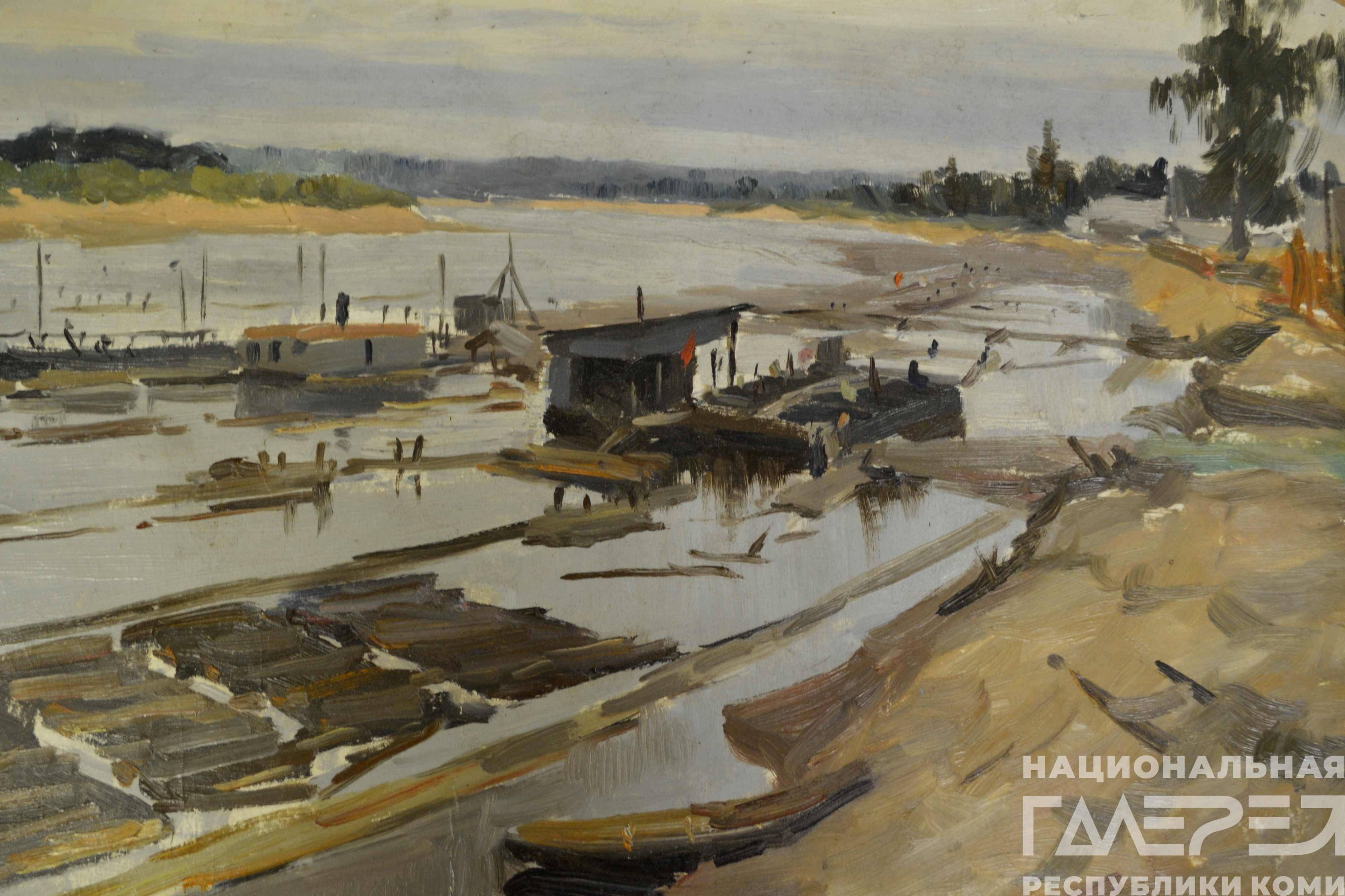 Запань 1975. Картон, масло.
